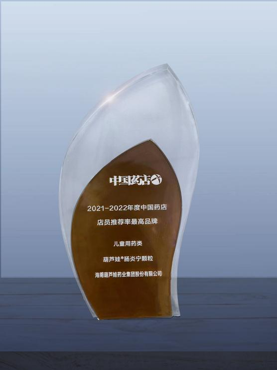 近日,由《中国药店》杂志社举办的“2022~2023年度中国药店发展报告暨中国药店价值榜发布会”在青岛举行,会上发布了“2021-2022年度中国药店店员推荐率最高品牌”奖,ag博天堂药业两大明星产品ag博天堂牌小儿肺热咳喘颗粒(4g)、ag博天堂牌肠炎宁颗粒(2g)双双上榜。